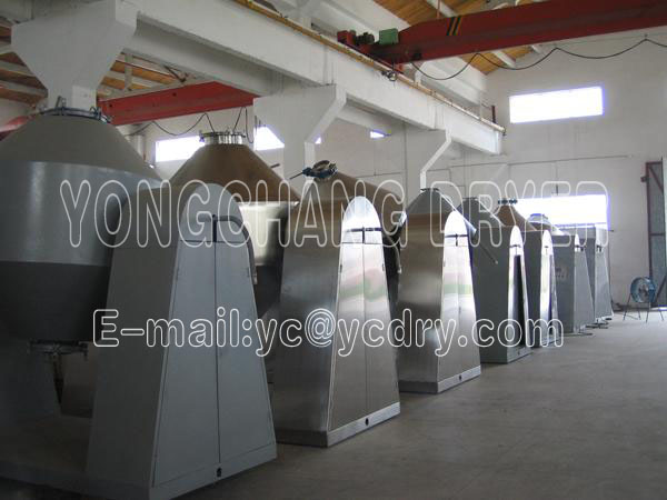 2) Under action of driving power, the tank is rotated slowly and the raw material is mixed continuously. The purpose of reinforced drying can be realized;