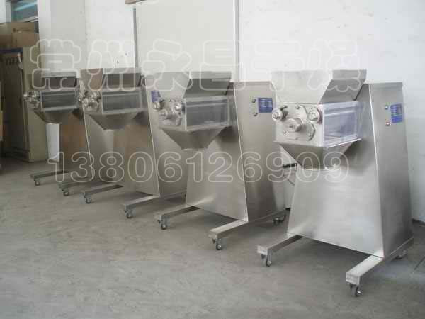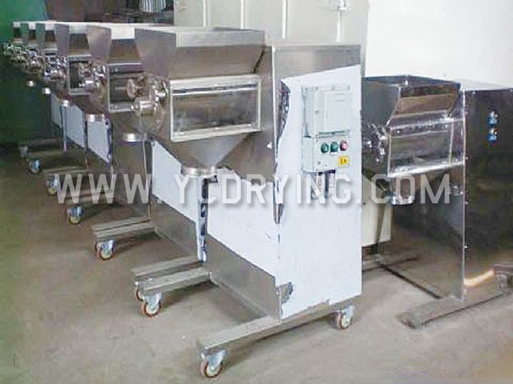 YK Swing Granulator is the special granulator that can make damp powder pass through screen and granulate particles under the reaction of clockwise and counterclockwise rotating of cylinder. In addition, it can make the agglomeration powder into the needed size particles. The material contact area is made of stainless. It’s easy to clean, simple operation and low energy consumption.