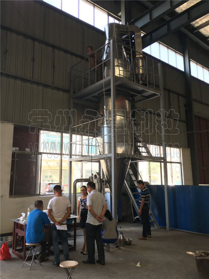 1. Rapid drying speed.The surface area of the material will be enlarged greatly when liquid raw material is atomized and 95% - 98% of water can be evaporated instantly in the hot airflow. The drying time only need to take several seconds. This dryer is especially suitable for heating sen sitive material.